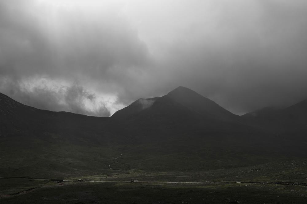 Historically Scottish art and literature have wrestled with ideas of awe, intensity ruggedness, terror, and vastness emphasising Man’s relative insignificance in the face of Nature, arousing emotions, and stimulating the imagination. Romantic Scottish art of the past has been more distinct from the ‘beautiful’ and the ‘picturesque’ aesthetic qualities more associated with the English tradition. The Scots evidence a more apocalyptic and laconic character flirting with both the grandeur and violence of natural phenomena; Scotland at the edge of the world.