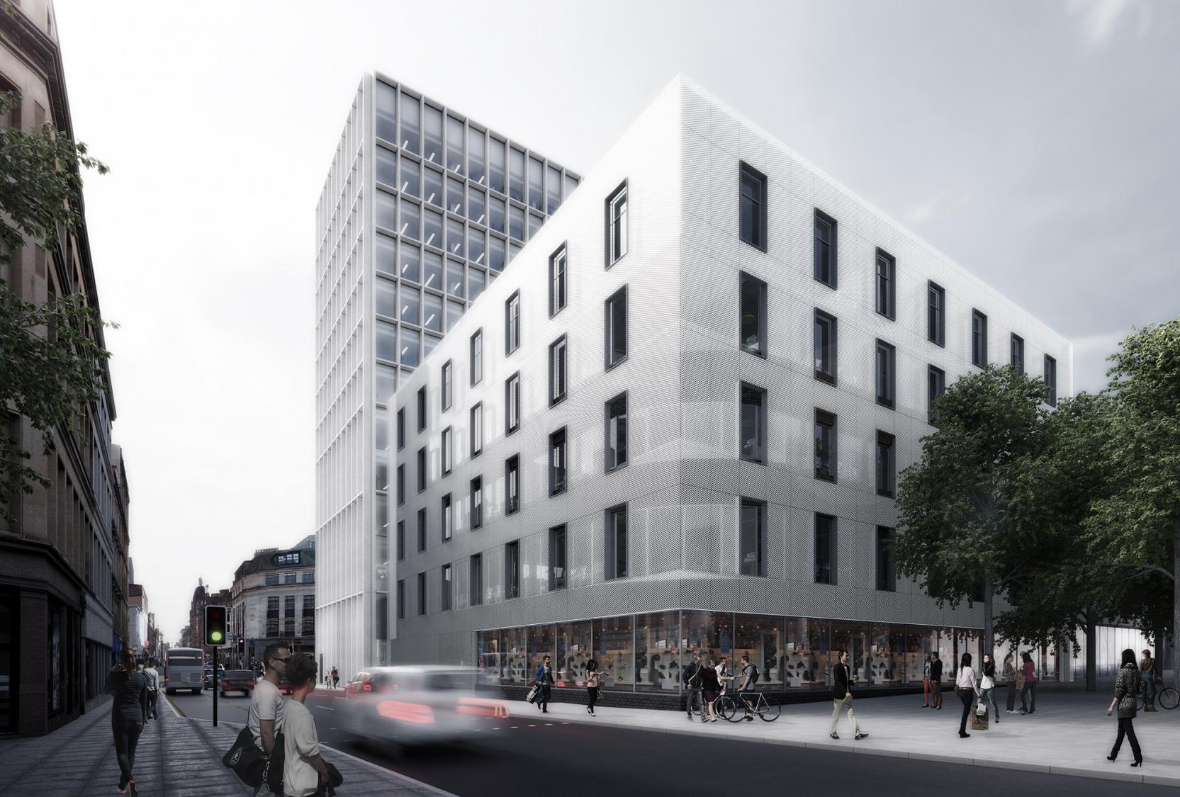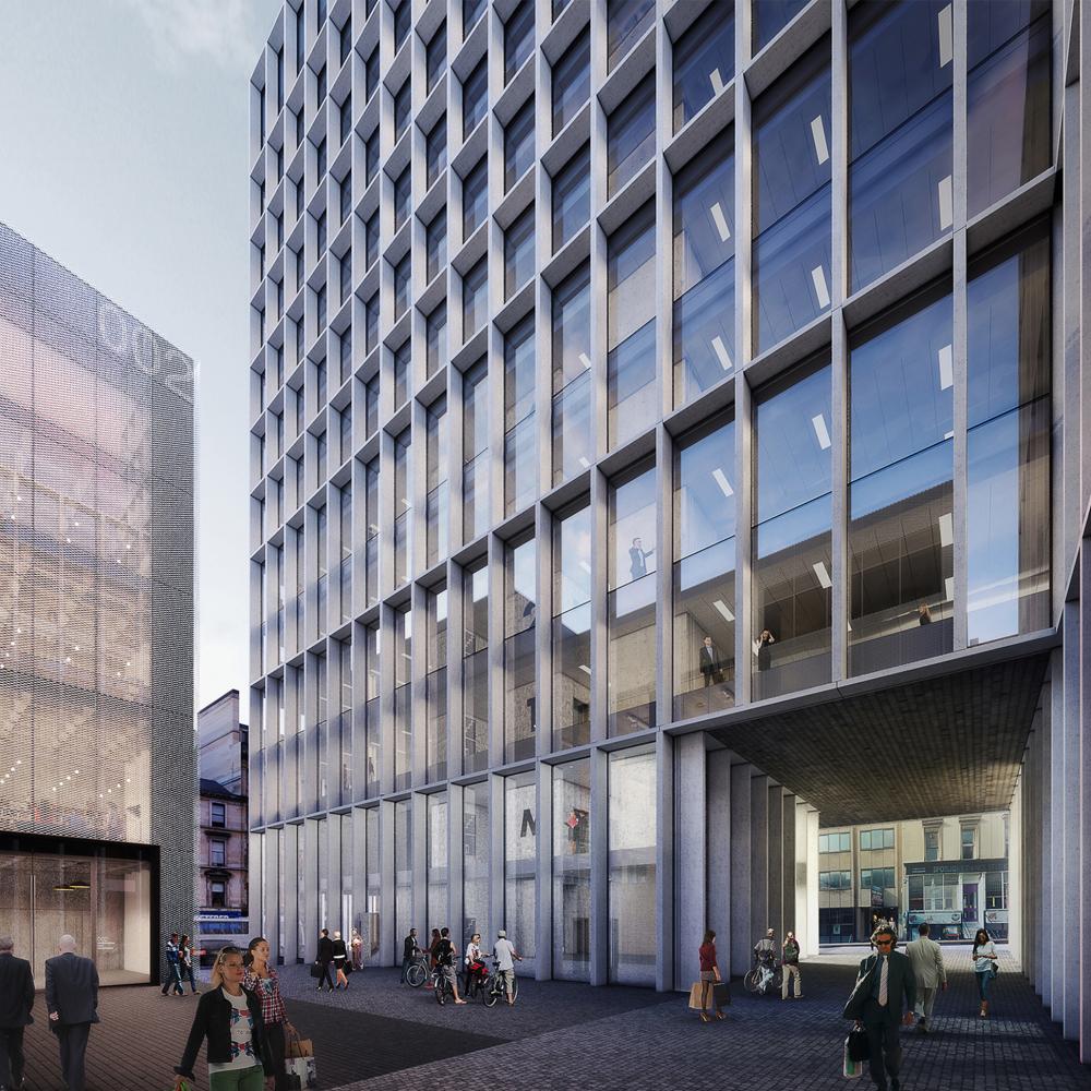 Stallan-Brand are proposing an ambitious office development in Glasgow City Centre. The proposed development looks to break down the impenetrable mass which currently exists on the site as the former BHS department store. We have looked to design the new development to add a contextually responsive proposal and contribute to the public realm with increased site permeability and ground-level activation.