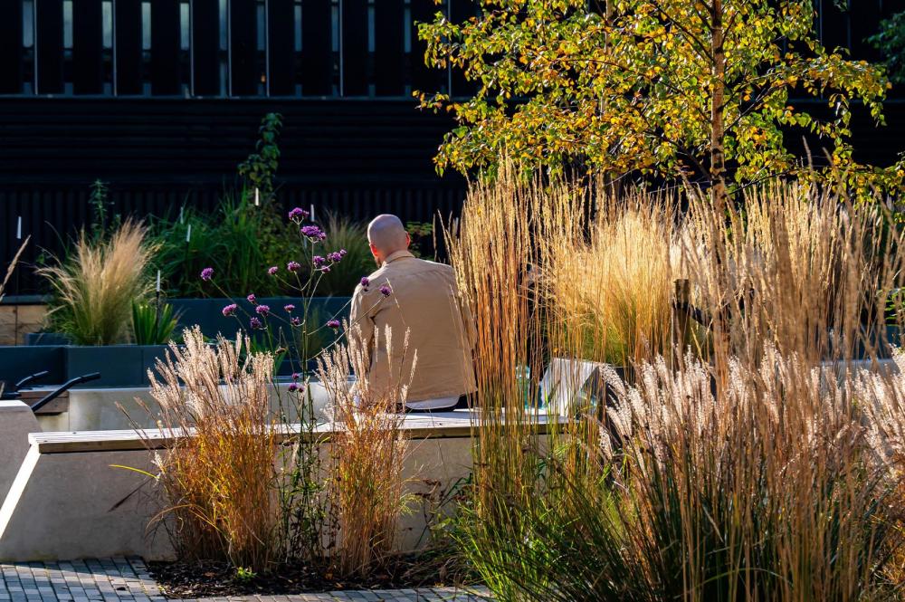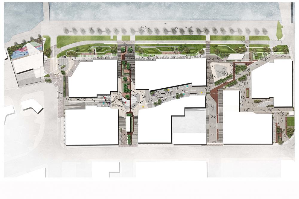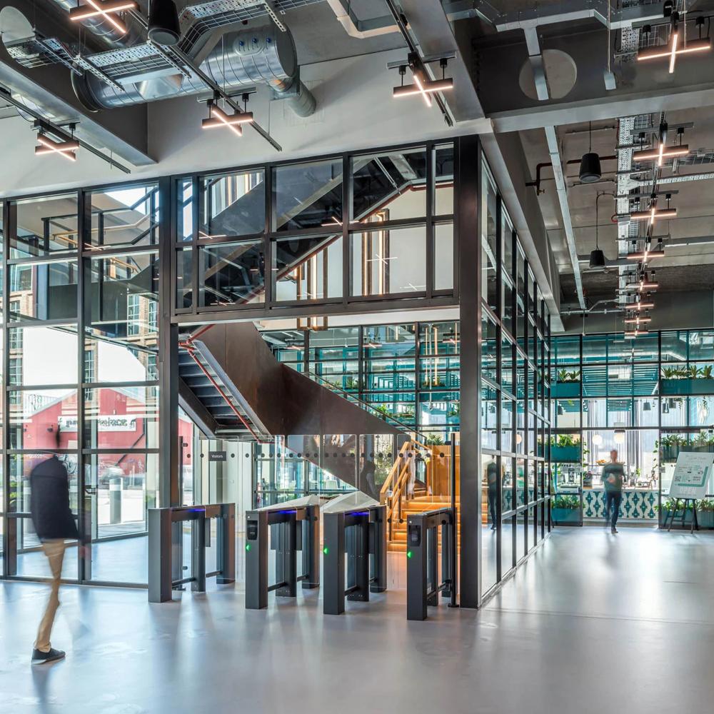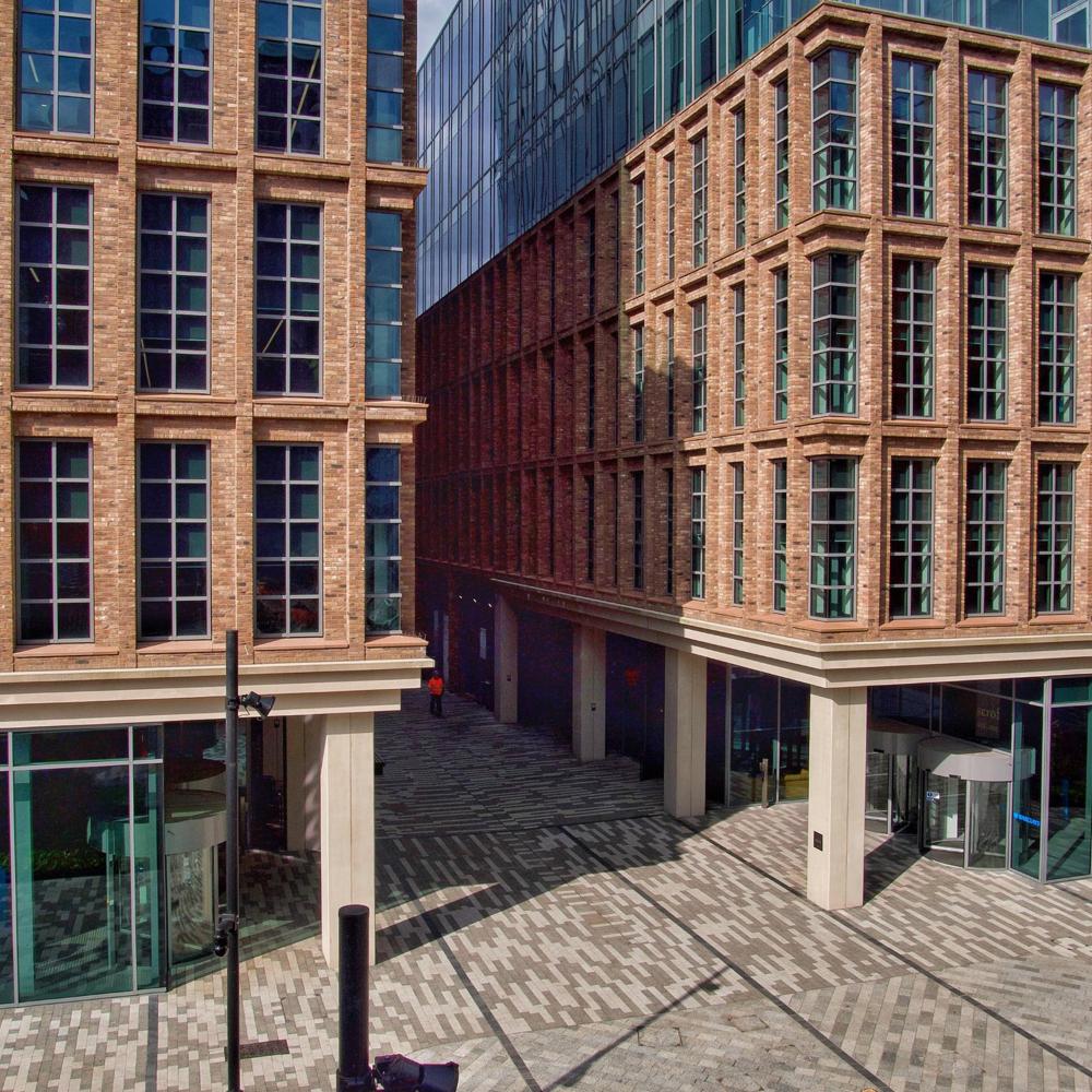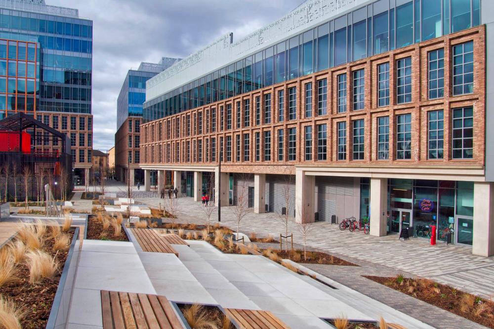 The public realm that unites the three building blocks is an important feature of the workplace experience.