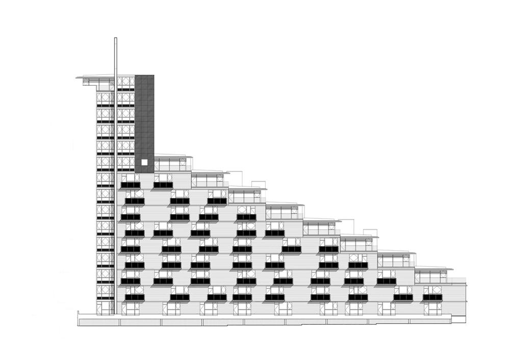 The tower is a highly visible icon that acts as a gateway to frame the views from the bridge. It is a high-density development of 72 one, two, and three bedroom apartments that have aspect to the river with balconies or private terraces.