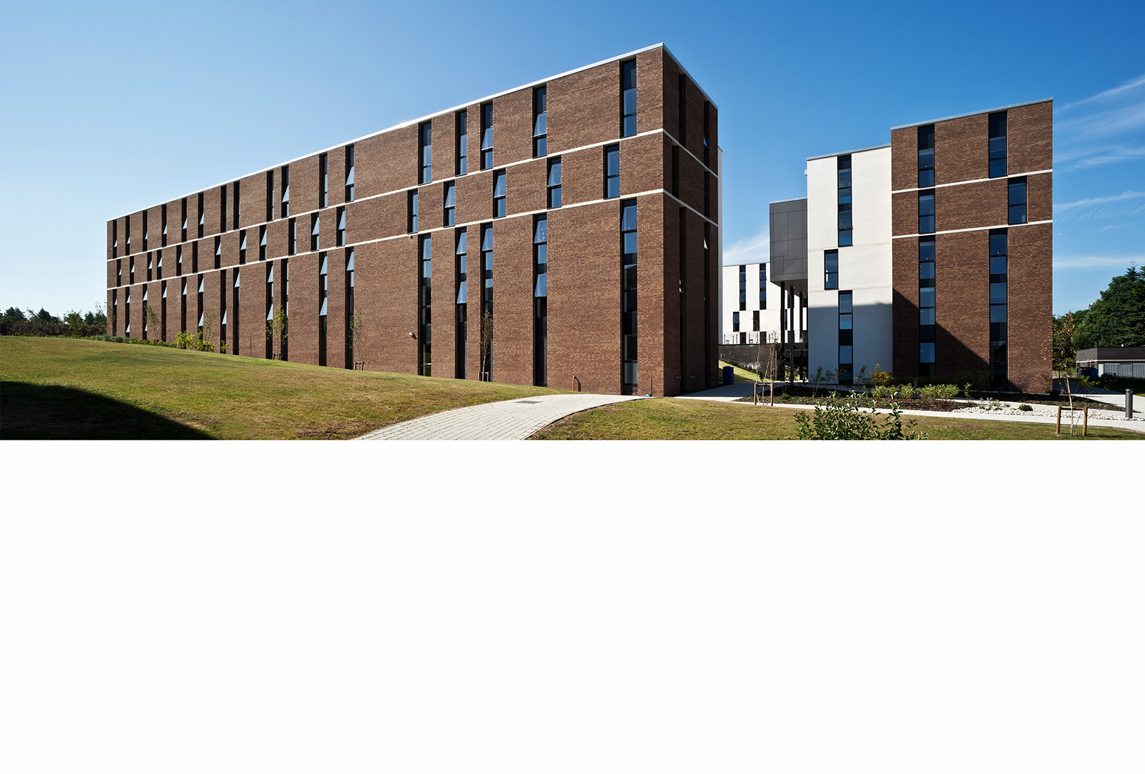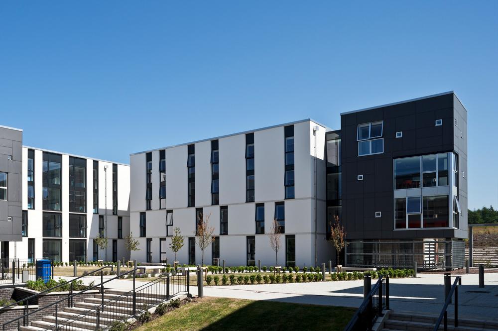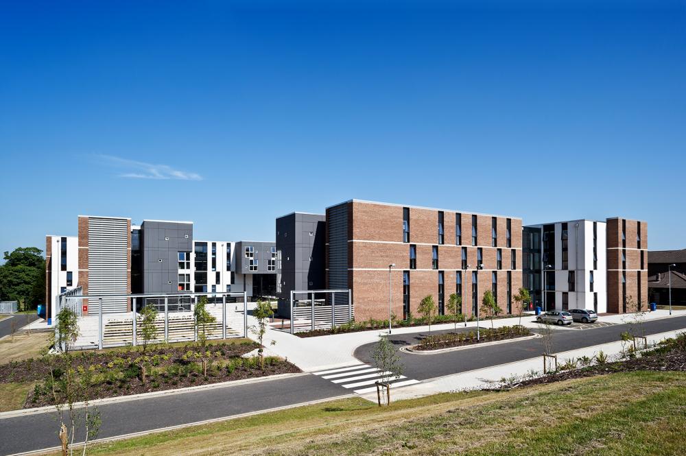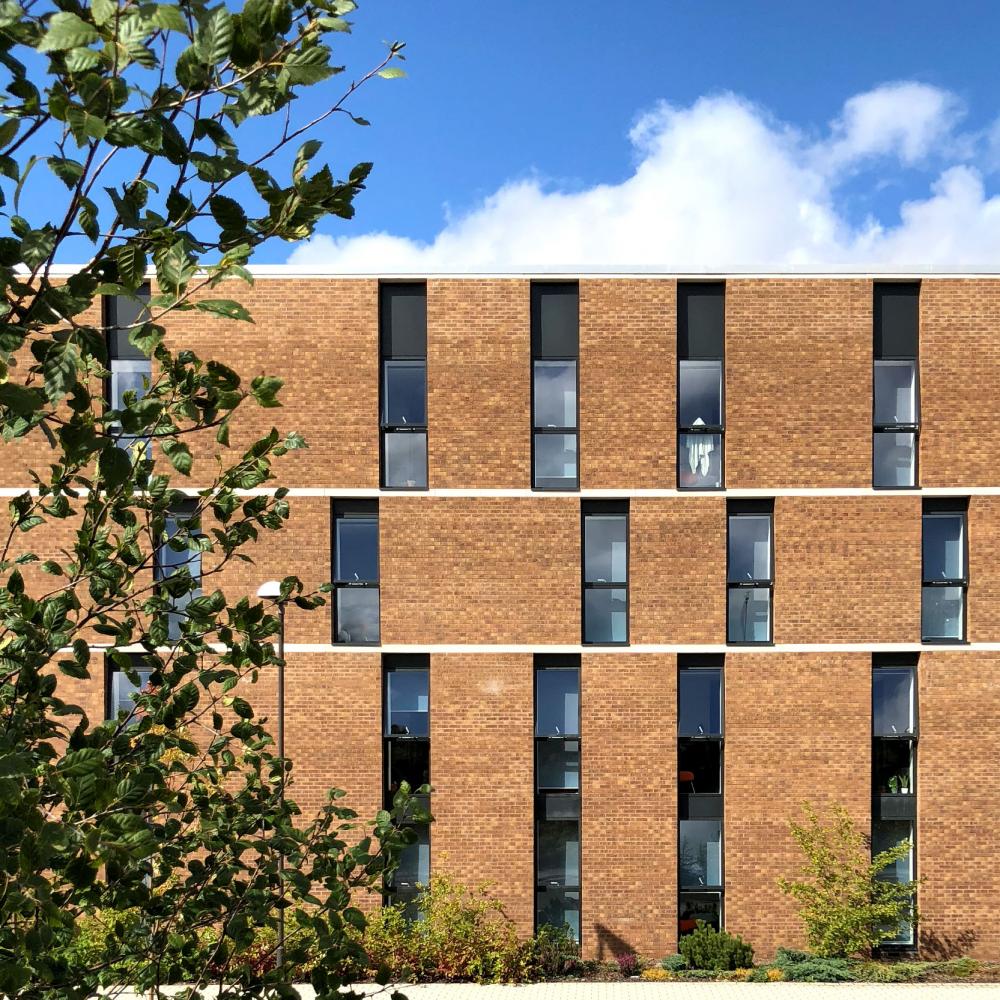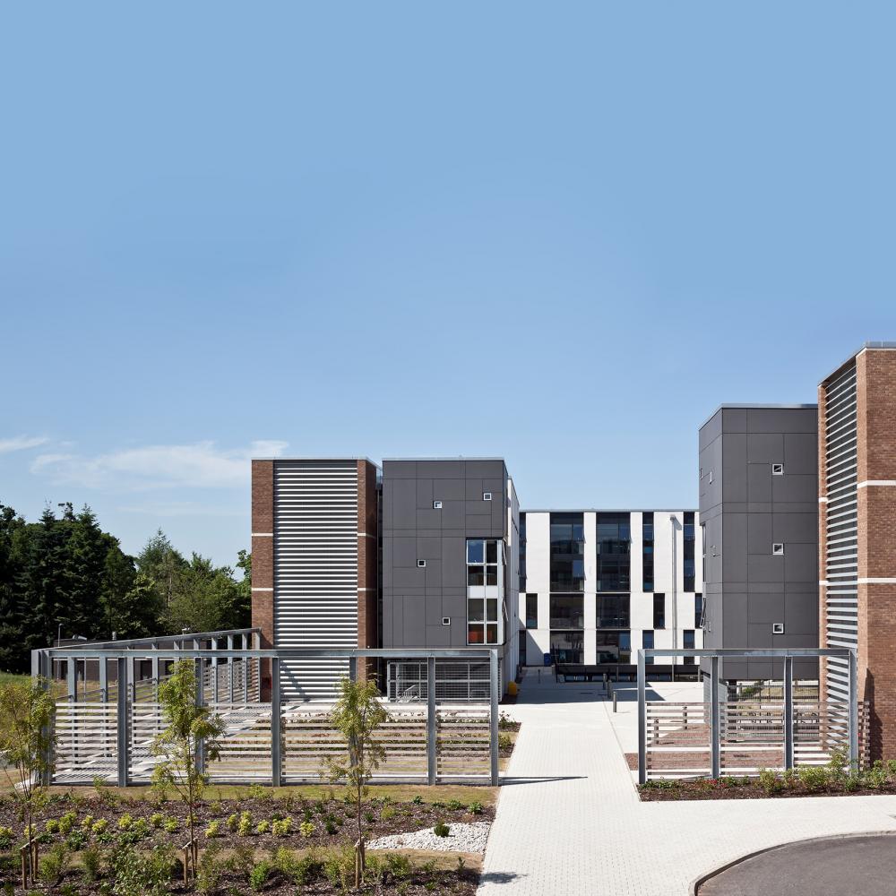 Heriot Watt University has a rural campus located on the western edge of the City of Edinburgh. We worked with the University to refresh their campus masterplan and develop a strategy for delivering a new masterplan and progress 480 new student residential apartments as a first phase. Our proposals delivered a courtyard architecture that was simply detailed externally but internally opened onto a new garden. The accommodation has been described as best in class compared to other universities with generously proportioned rooms and excellent amenities.