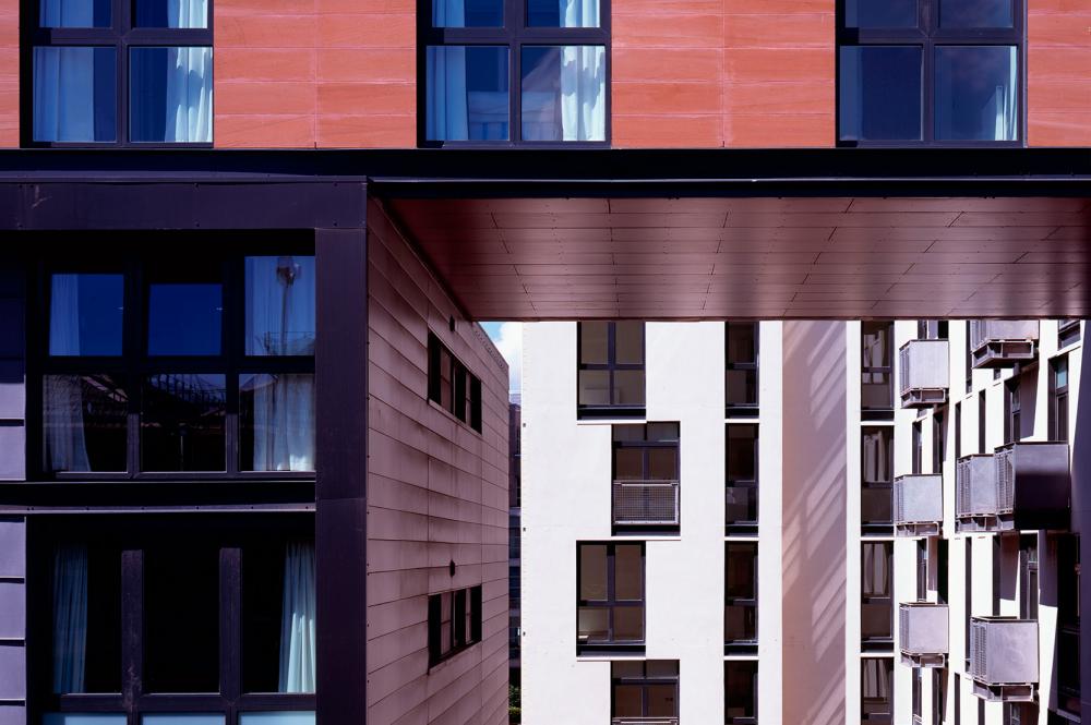 The site for this project stretched across the depth of a city block. Our masterplan proposal was to cut this urban block in half by turning the residential development inward, creating a new public space and through-fare. This has opened up a new east/west pedestrian link between the city's shopping district and the new financial quarter.