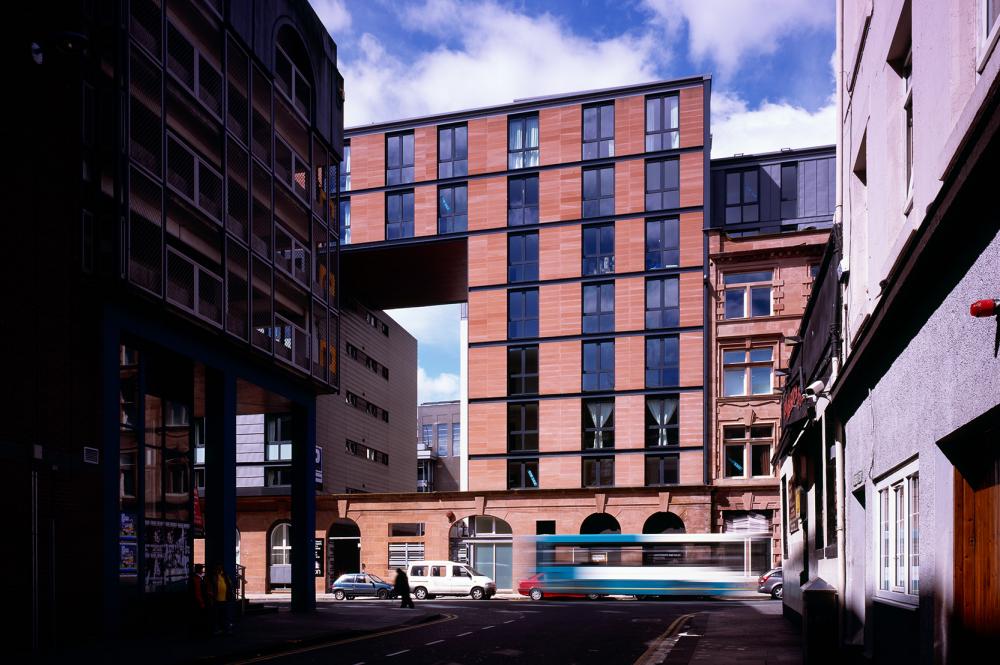 The project retained a listed façade on the primary frontage of Oswald Street and replaced a fire-damaged derelict warehouse building.