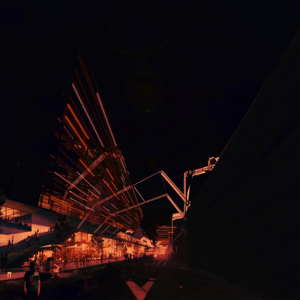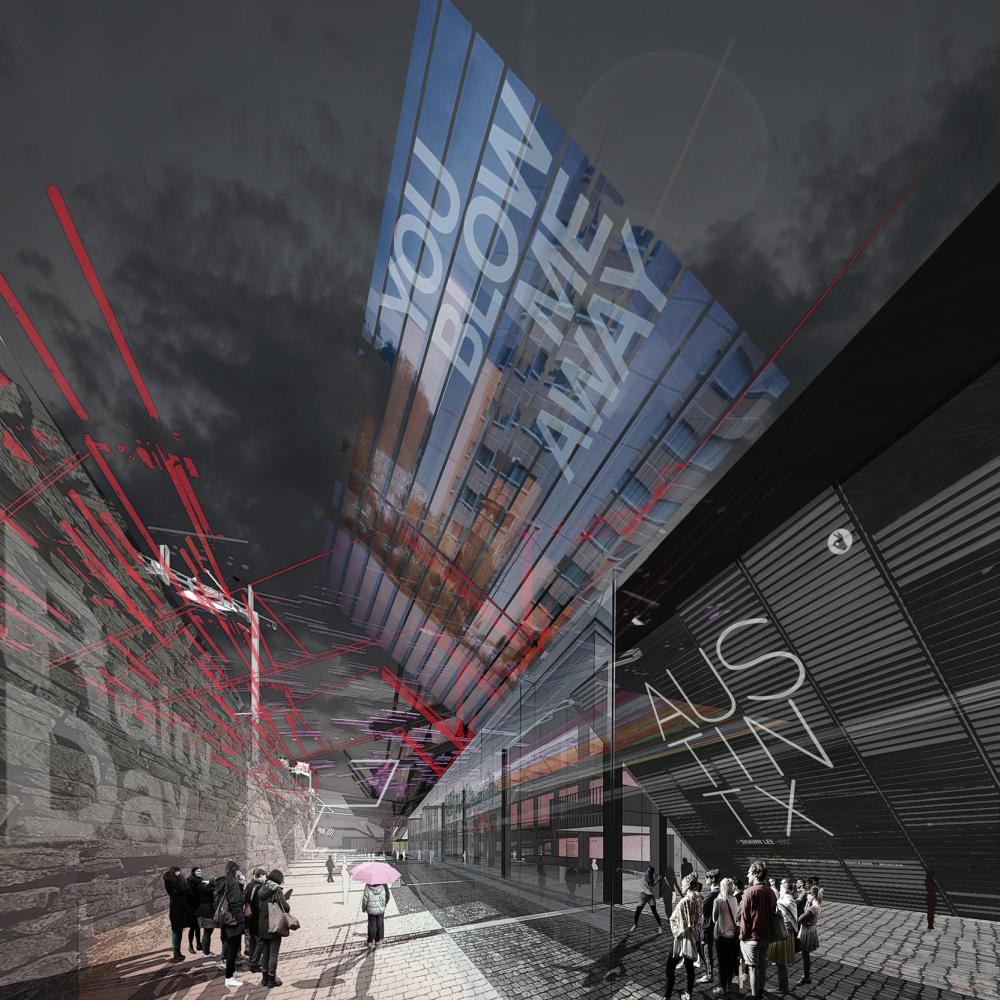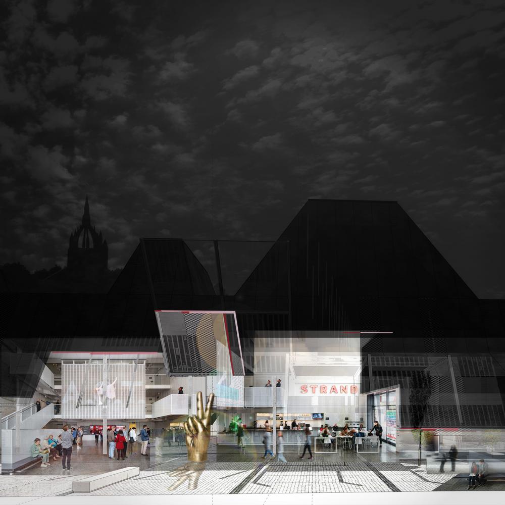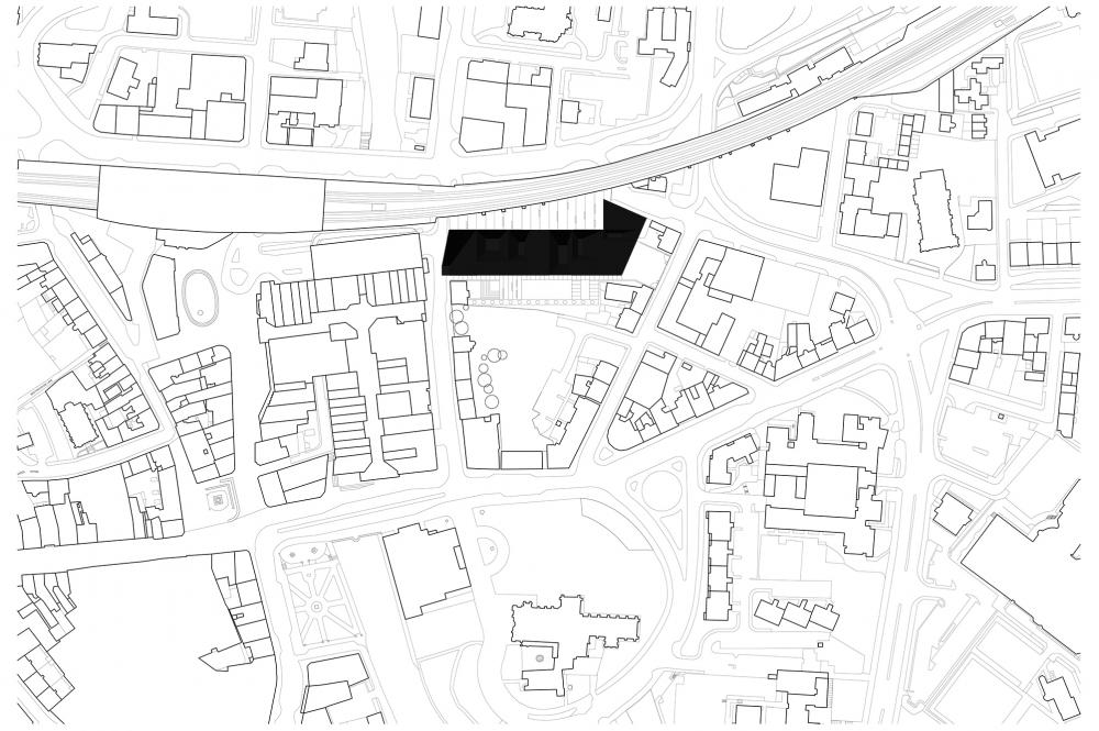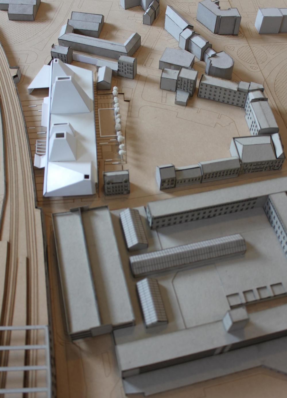 The site for the theatre is directly parallel to the busiest railway line in Scotland and adjacent to Paisley's Gilmour Street Station. The ripped city edge is turned into a positive destination whilst super insulating the theatre spaces from noise.