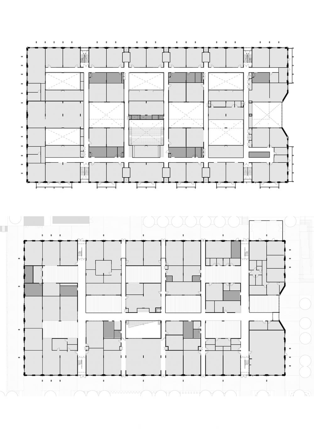 The building takes the footprint of the rugby field site and extrudes this to two storeys, an appropriate scale for the Peebles context. The concept is derived from the county estate style properties in the surrounding area that typify the southern part of Peebles. The concept is that of an “orchard of learning”, whereby a rigorous grid with paths east-west and north-south are broken up by clearings within the orchard. These become atria within the building that are associated with different functions or departments.