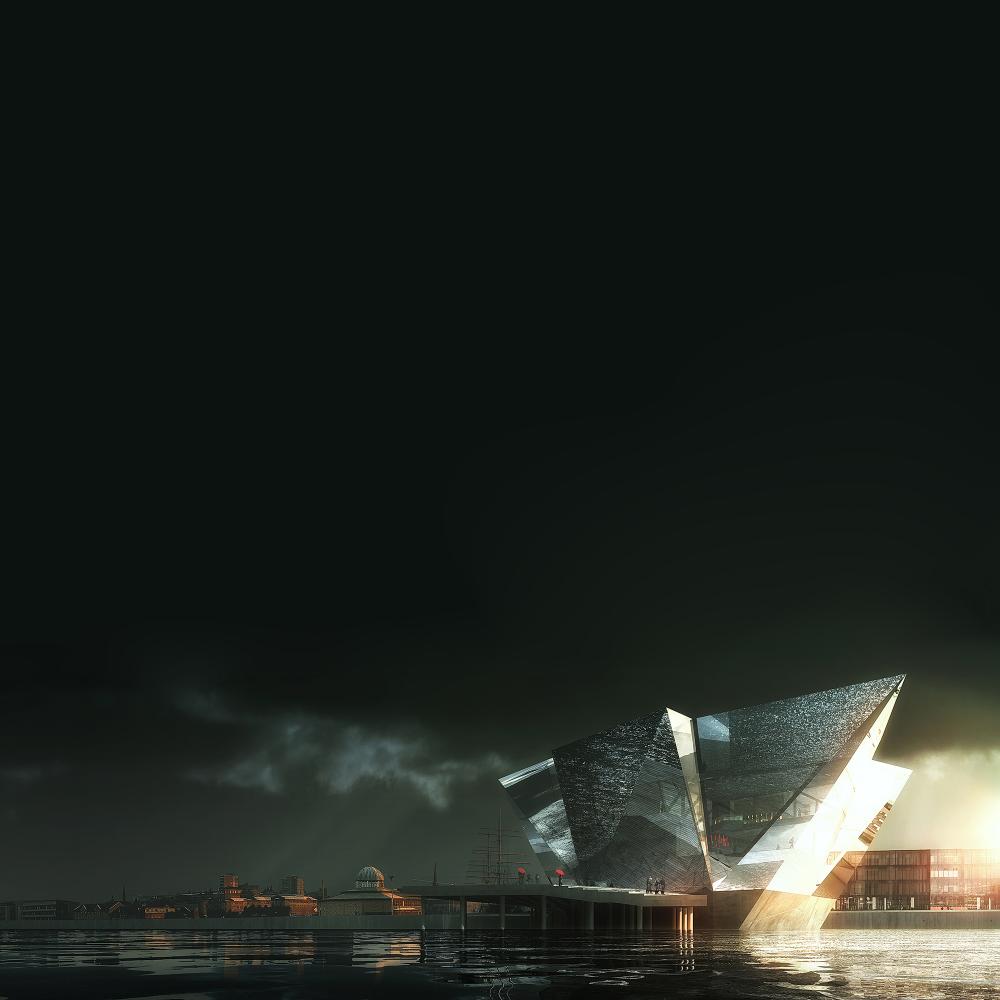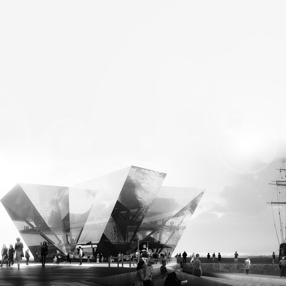 Shortlisted design in collaboration with Joshua Prince Ramus of REX Architecture for the V&A's new design museum on the banks of Dundee's River Tay.