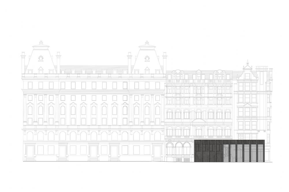A newly constructed Visit Scotland building in such an elegant context requires to have a classically proportioned gravitas and spirit to harmonise and relate to its immediate environment. The proposed plan incorporates elevations that allow surrounding facades to be appreciated from within the building. The double volume allows the space to feel light and airy.