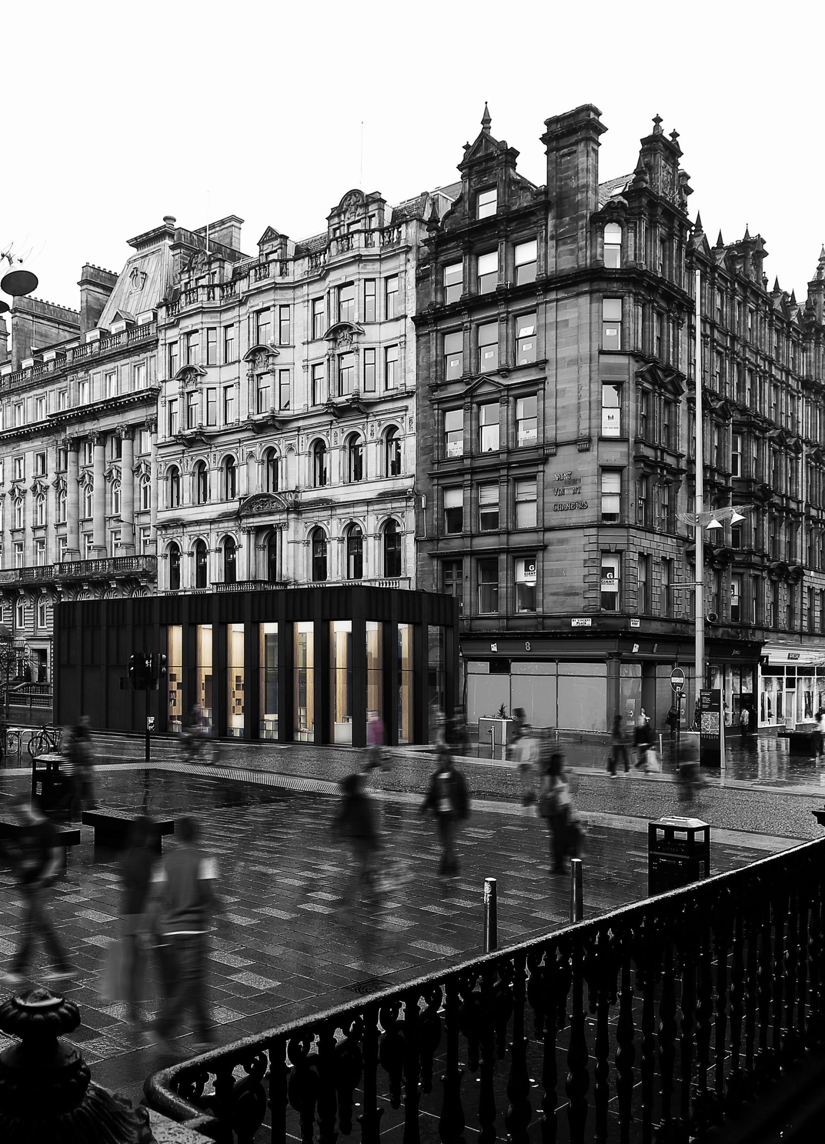 St. Vincent Street is one of Glasgow’s finest Victorian Streets with incredible legacy architecture and character. Our approach to the new architecture for the Visit Scotland building in St. Vincent Street aims to be understated and dignified in character. Our thinking is that the internal volume will have great flexibility and simplicity and can be repeatedly reconfigured to respond to changing retail and visitor information requirements.